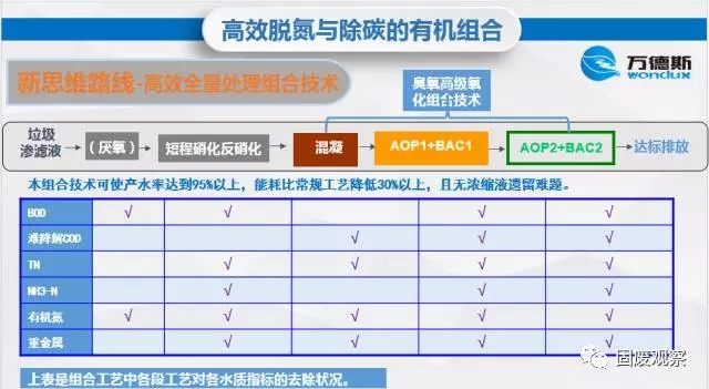 南京萬德斯環(huán)保科技股份有限公司上海分公司總經(jīng)理陳建湧介紹,在滲瀝液脫碳技術(shù)上,萬德斯環(huán)保采用“厭氧+高效生化+納濾+臭氧高級(jí)氧化AOP(Advanced Oxidation Process)” 為主的工藝,在高效脫氮中,利用短程硝化技術(shù),節(jié)省供氧量25%、節(jié)省反硝化碳源40%、減少污泥生成量50%、減少投堿量、縮短反應(yīng)時(shí)間。在滲瀝液高效全量處理中,組合利用 “厭氧+短程硝化反硝化+臭氧高級(jí)氧化(混凝+AOP1+BAC1+AOP2+BAC2)”技術(shù),能使產(chǎn)水率達(dá)到95%以上,且無濃縮液遺留難題。除技術(shù)創(chuàng)新外,陳建湧總經(jīng)理認(rèn)為,提倡垃圾干濕分類,采取各種有效措施減少各種好水分包括雨水進(jìn)入垃圾,以及垃圾堆場等,對(duì)降低滲瀝液處理成本具有非常重要的意義。