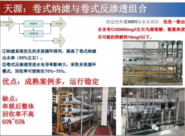 如何做到出水水質(zhì)達(dá)標(biāo)且“零”排放,針對(duì)焚燒廠垃圾滲瀝液的諸多問題,武漢天源環(huán)保股份有限公司常務(wù)副總經(jīng)理陳建平提出了“預(yù)處理+二級(jí)UASB+MBR處理系統(tǒng)+納濾+反滲透”為核心的成熟工藝方案,在此基礎(chǔ)上,針對(duì)性提供各類滲瀝液處理工藝。