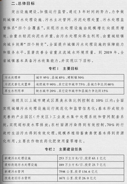 到2019年,全省城市和重點鎮(zhèn)實現(xiàn)污水處理設(shè)施建設(shè)全覆蓋,城鎮(zhèn)生活污水處理廠提標改造基本完成,新增城鎮(zhèn)生活污水管網(wǎng)7598公里,改造老舊污水管網(wǎng)1678公里、合流制管網(wǎng)1269公里,新增污泥無害化處理處置設(shè)施規(guī)模達639噸/日,新增再生水利用設(shè)施規(guī)模達89萬立方米/日。