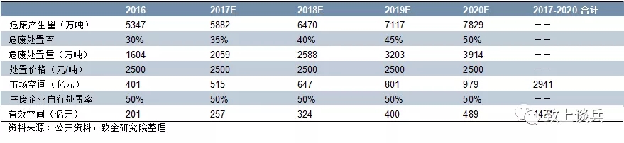 圖表:危廢市場空間測算(按官/方統(tǒng)計數(shù)據(jù)口徑)
