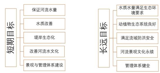 一般,我國諸多城市河流污染重,生態(tài)差,問題多,有的河段甚至出現多年積累的黑臭現象,治理工作難以一蹴而就。因此城市河流的水污染治理與修復目標可以分為長遠目標和短期目標。