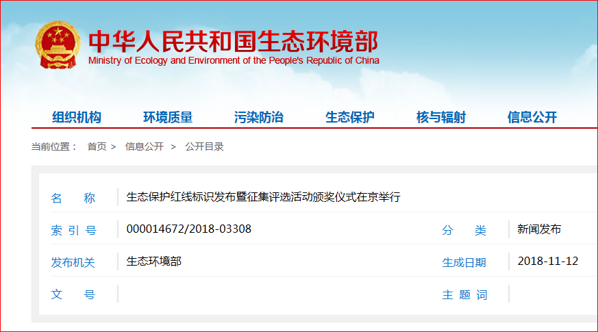 11月12日,生態(tài)環(huán)境部、自然資源部在北京聯(lián)合舉辦生態(tài)保護(hù)紅線標(biāo)識發(fā)布暨征集評選活動頒獎儀式,生態(tài)環(huán)境部有關(guān)負(fù)責(zé)同志為標(biāo)識揭幕并致辭。