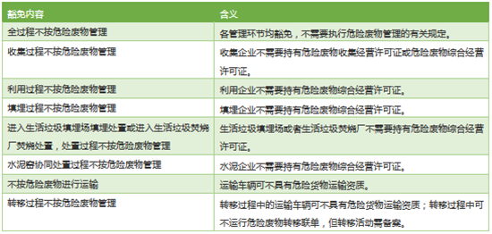最后,需要進一步澄清的是,《危險廢物豁免管理清單》僅僅是豁免了某種危險廢物在滿足豁免條件的情形下,在特定環(huán)節(jié)按照豁免內容進行管理,不按危險廢物進行管理。