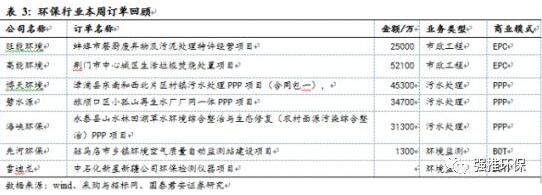 根據(jù)公告與招投標(biāo)信息統(tǒng)計,本周環(huán)保公司合計新增訂單18.97億元,其中,新增訂單金額最大三家依次為高能環(huán)境(5.21億元)、博天環(huán)境(4.53億元)、碧水源(3.47億元)。