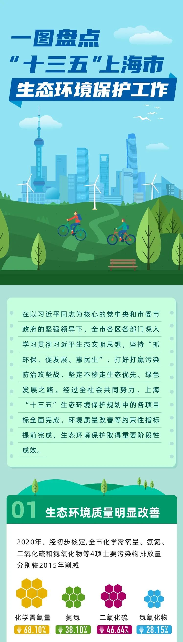 2021年1月14日,上海市政府新聞辦舉行市政府新聞發(fā)布會,介紹“十三五”生態(tài)環(huán)境保護規(guī)劃完成情況和“十四五”規(guī)劃思路。 我市“十三五”生態(tài)環(huán)境保護規(guī)劃中各項目標全面完成,環(huán)境質量改善等約束性指標提前完成,生態(tài)環(huán)境保護取得重要階...