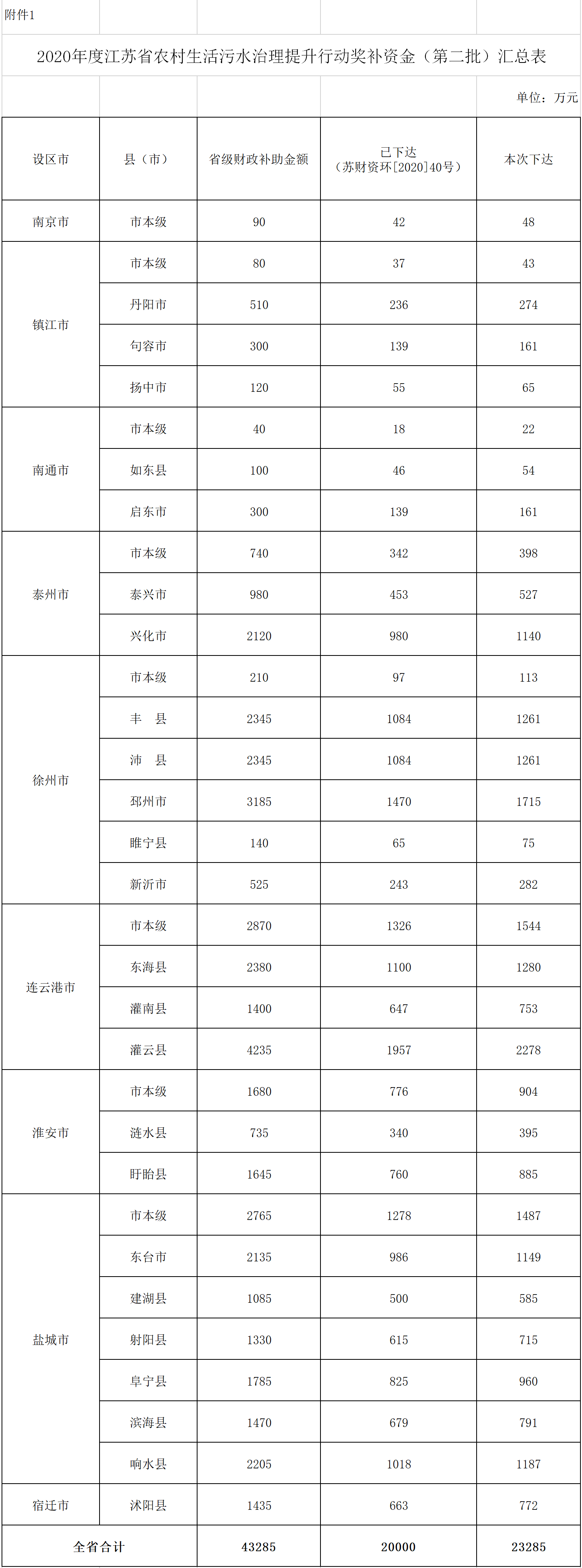 關(guān)于下達(dá)2020年度全省農(nóng)村生活污水治理提升行動(dòng)獎(jiǎng)補(bǔ)資金(第二批)的通知蘇財(cái)資環(huán)〔2020〕57號(hào) 各設(shè)區(qū)市、縣(市)財(cái)政局、生態(tài)環(huán)境局: 根據(jù)省政府辦公廳印發(fā)的《江蘇省農(nóng)村生活污水治理提升行動(dòng)方案》(蘇政辦發(fā)〔2020〕38號(hào))和省生態(tài)環(huán)境廳等四部門聯(lián)合印發(fā)的《江蘇省2020年農(nóng)村生活污水治理專項(xiàng)...