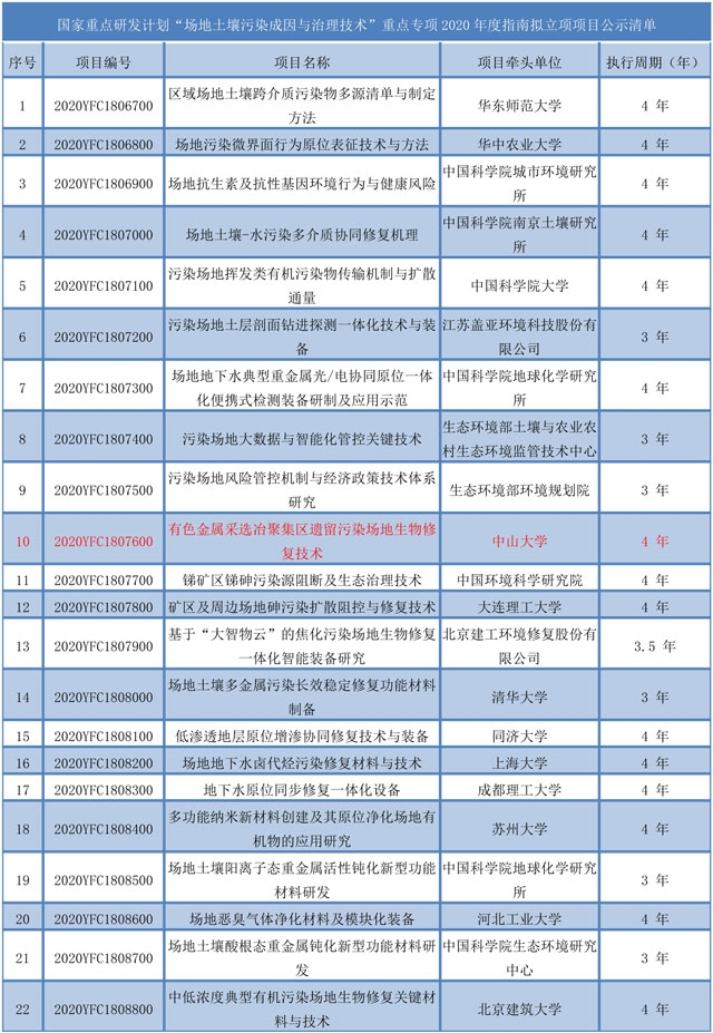 近日,科技部公布了2020年國家重點(diǎn)研發(fā)計(jì)劃“場地土壤污染成因與治理技術(shù)”重點(diǎn)專項(xiàng)立項(xiàng)結(jié)果,由航天凱天環(huán)保聯(lián)合中山大學(xué)、中國地質(zhì)大學(xué)、中南大學(xué)、湖南大學(xué)、中科院地球化學(xué)研究所等10家單位聯(lián)合申報(bào)的“有色金屬采選冶聚集區(qū)遺留污染場地生物修復(fù)技術(shù)(項(xiàng)目編號:2020Y...