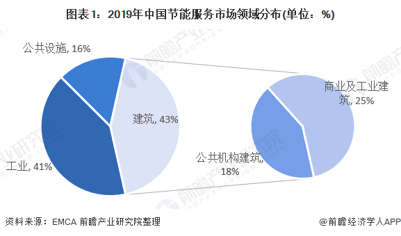 節(jié)能服務(wù)分布在工業(yè)和建筑領(lǐng)域 根據(jù)中國節(jié)能協(xié)會節(jié)能服務(wù)產(chǎn)業(yè)委員會(EMCA)2019年對合同能源管理項(xiàng)目進(jìn)行調(diào)查分析的結(jié)果顯示,按照節(jié)能三大領(lǐng)域分類,工業(yè)領(lǐng)域項(xiàng)目有項(xiàng)目總數(shù)的41%;建筑領(lǐng)域項(xiàng)目有占項(xiàng)目總數(shù)的43%,其中公共機(jī)構(gòu)建筑18%,商業(yè)及工業(yè)建筑25%;公共設(shè)施項(xiàng)目項(xiàng)目總數(shù)的16%。 近年來...