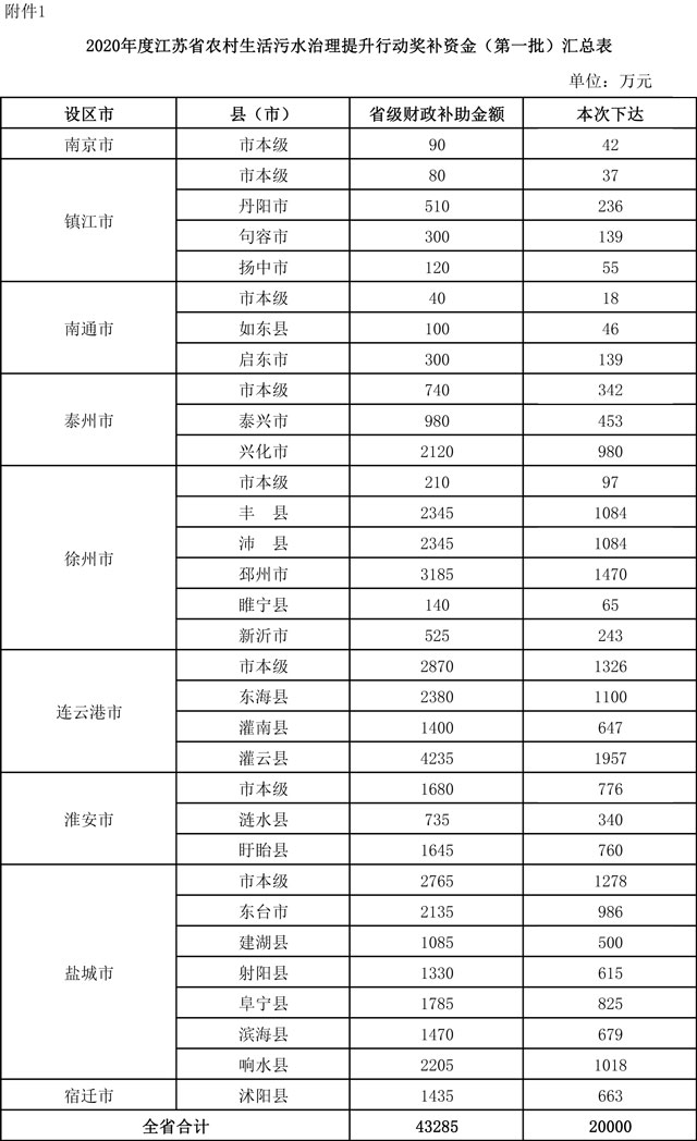 江蘇省財(cái)政廳剛剛發(fā)布了《關(guān)于下達(dá)2020年度全省農(nóng)村生活污水治理提升行動獎(jiǎng)補(bǔ)資金(第一批)的通知》。 本批共下達(dá)資金2億元,要求加快行政村污水治理設(shè)施建設(shè),抓緊制定農(nóng)村生活污水治理年度工作計(jì)劃;確保農(nóng)村生活污水處理設(shè)施“建成一個(gè)、運(yùn)行一個(gè)、見效一個(gè)”;各地及時(shí)撥付省補(bǔ)資金,建...