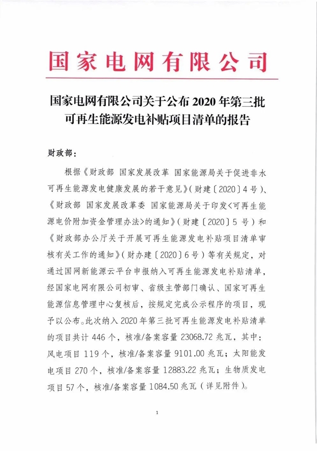 國家電網(wǎng)發(fā)布2020年第三批可再生能源發(fā)電補(bǔ)貼項(xiàng)目清單,其中納入補(bǔ)貼清單的生物質(zhì)能發(fā)電項(xiàng)目共計(jì)57個(gè),詳情如下: 根據(jù)《財(cái)政部 國家發(fā)展改革委 國家能源局關(guān)于促進(jìn)非水可再生能源發(fā)電健康發(fā)展的若干意見》(財(cái)建〔2020〕4號)、《財(cái)政部 國家發(fā)展改革委 國家能源局關(guān)于印發(fā)<可再生能源電價(jià)附加資金...