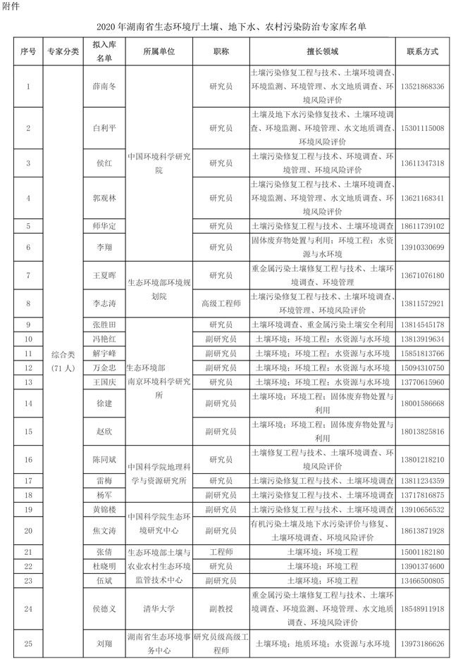 湖南省生態(tài)環(huán)境廳最近發(fā)布了關(guān)于土壤、地下水、農(nóng)村污染防治專家?guī)烊霂鞂<颐麊蔚墓?,詳情如下?各有關(guān)單位和個(gè)人: 近期,我廳向全國(guó)科研院所、高等院校、社會(huì)組織、行業(yè)協(xié)會(huì)及企事業(yè)單位公開征集土壤、地下水、農(nóng)村污染防治相關(guān)技術(shù)專家。經(jīng)申請(qǐng)人自愿報(bào)名,按照《關(guān)于征集湖南省土壤(地下水)污染防治專家?guī)鞂<业?..