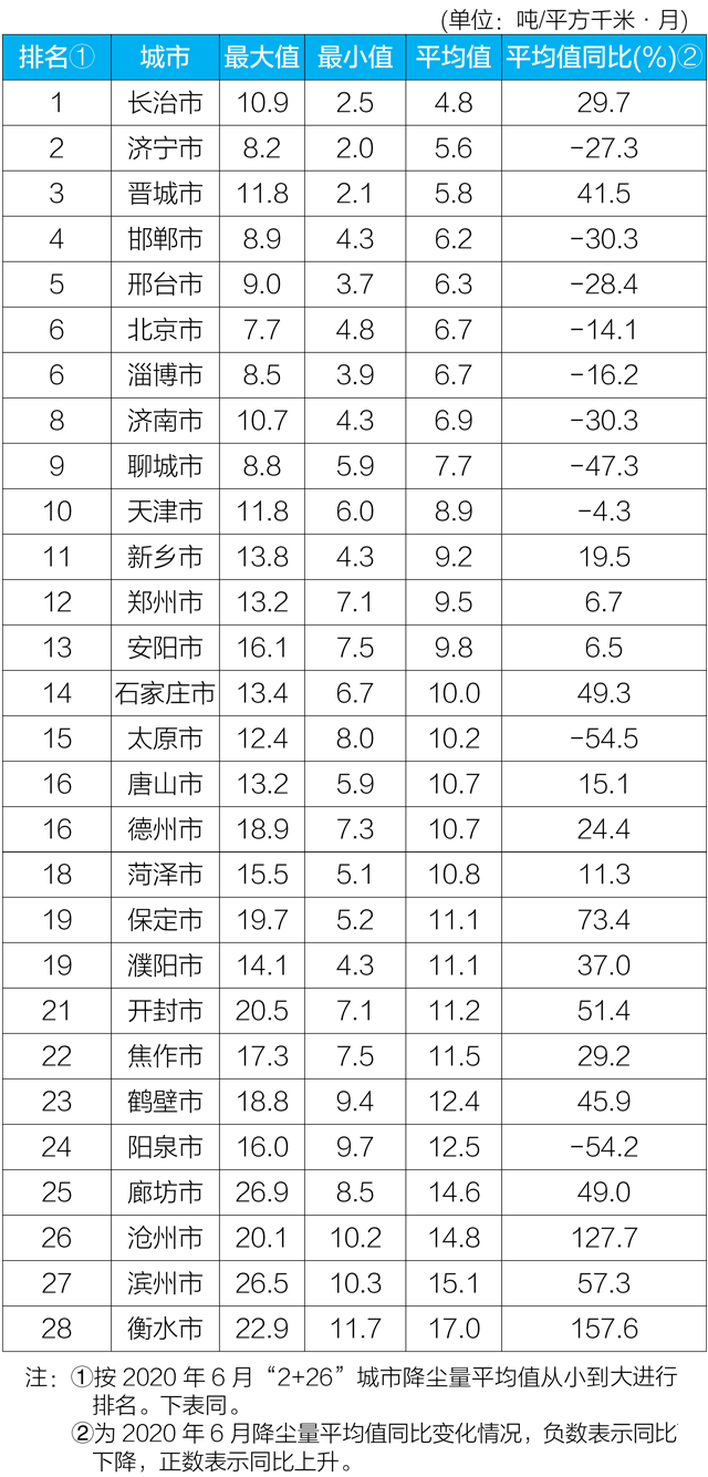 生態(tài)環(huán)境部今日向媒體公布了2020年6月京津冀大氣污染傳輸通道“2+26”城市(以下簡稱“2+26”城市)和汾渭平原11城市降塵監(jiān)測結(jié)果。 一、“2+26”城市 6月,“2+26”城市降塵量均值范圍在4....