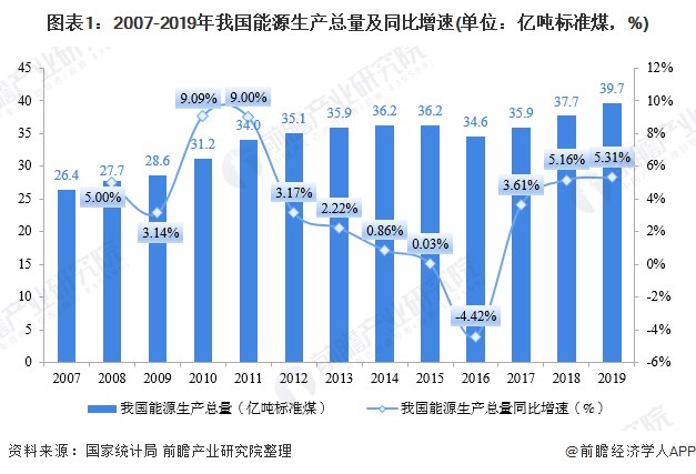 1、中國能源供給逐年增長 能源亦稱能量資源或能源資源,是國民經(jīng)濟(jì)的重要物質(zhì)基礎(chǔ),未來國家命運(yùn)取決于能源的開發(fā)和有效利用程度。 2007-2019年,我國能源生產(chǎn)總量整體上呈現(xiàn)上升趨勢,其中,2010年我國能源生產(chǎn)總量為31.21億噸標(biāo)煤,同比增長9.09%,為近年來最大增幅;2016年較上年有所下降...