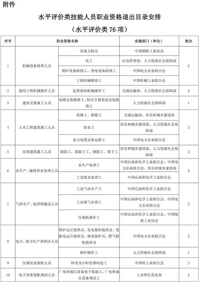 7月10日,人社部發(fā)布“人力資源社會保障部辦公廳關(guān)于對水平評價類技能人員職業(yè)資格退出目錄有關(guān)安排進(jìn)行公示的公告”,公告稱:為貫徹落實(shí)2019年12月30日國務(wù)院常務(wù)會議精神,擬分批將水平評價類技能人員職業(yè)資格退出目錄。涉及工業(yè)廢水處理工、工業(yè)廢氣處理工、工業(yè)固體廢物處理處置工...