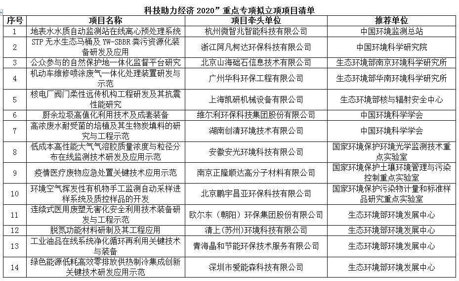 日前,生態(tài)環(huán)境部發(fā)布“科技助力經(jīng)濟(jì)2020”重點(diǎn)專項(xiàng)擬立項(xiàng)項(xiàng)目清單。涉及大氣污染防治、廢水深度處理、廚余垃圾處理等20個環(huán)保項(xiàng)目。詳情如下: 關(guān)于“科技助力經(jīng)濟(jì)2020”重點(diǎn)專項(xiàng)擬立項(xiàng)項(xiàng)目的公示 根據(jù)《科技部關(guān)于“科技助力經(jīng)濟(jì)2020&rd...