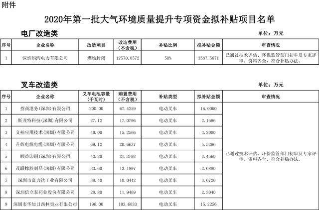 根據(jù)《深圳市大氣環(huán)境質(zhì)量提升補(bǔ)貼辦法(2018-2020年)》(深人環(huán)規(guī)〔2018〕2號),現(xiàn)將2020年第一批大氣環(huán)境質(zhì)量提升專項(xiàng)資金擬補(bǔ)貼項(xiàng)目予以公示。公示期為2020年6月18日至24日。如有異議,請?jiān)诠酒趦?nèi)通過電話、電子郵件等途徑,向市生態(tài)環(huán)境局業(yè)務(wù)經(jīng)辦人反饋。 附件:2020年第一批大氣...