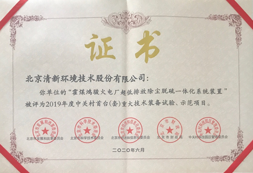 清新環(huán)境自主研發(fā)的“霍煤鴻駿火電廠超低排放除塵脫硫一體化系統(tǒng)裝置”,被評(píng)為“2019年度中關(guān)村首臺(tái)(套)重大技術(shù)裝備試驗(yàn)、示范項(xiàng)目”,為飽和煙氣的脫塵除霧提供了一種新穎、可靠、性價(jià)比高的新工藝設(shè)備選擇。 該裝備可實(shí)現(xiàn)超低排放,同時(shí)解決石膏雨、有色煙雨等...