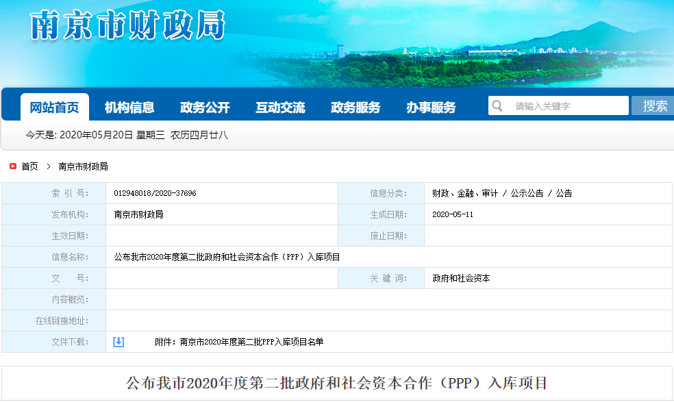 日前,南京發(fā)布南京市2020年度第二批PPP入庫項(xiàng)目名單。包括餐廚垃圾處理、地下空間建設(shè)兩個(gè)PPP項(xiàng)目。詳情如下: 公布我市2020年度第二批政府和社會(huì)資本合作(PPP)入庫項(xiàng)目 根據(jù)《江蘇省財(cái)政廳關(guān)于2020年度第二批政府和社會(huì)資本合作(PPP)項(xiàng)目入庫和試點(diǎn)的通知》(蘇財(cái)金〔2020〕42號),...