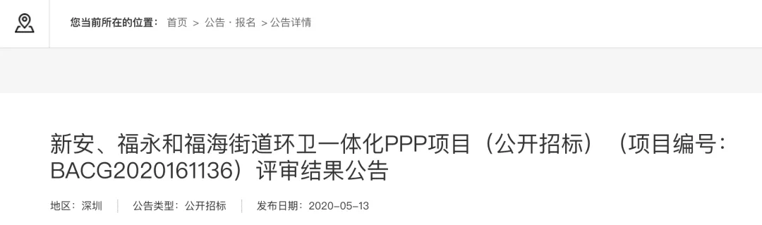 5月13日,深圳市寶安區(qū)新安、福永和福海街道環(huán)衛(wèi)一體化PPP項目發(fā)布評審結(jié)果公告,長沙中聯(lián)重科環(huán)境產(chǎn)業(yè)有限公司排名第一。 項目詳情: 項目實施機構(gòu):深圳市寶安區(qū)城市管理和綜合執(zhí)法局 項目概算(初始投資額):項目初始總投資為51972.73萬元,其中建設(shè)及車輛設(shè)備初始購置費為51768.83萬元,項目...