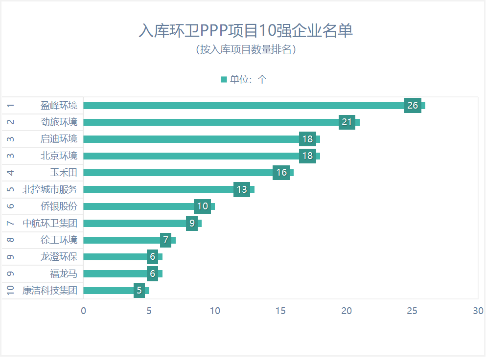 已入庫環(huán)衛(wèi)PPP項目領(lǐng)域,誰是最大贏家?入庫項目:財政部政府和社會資本合作中心PPP項目庫可以查詢到的項目,包括項目管理庫和項目儲備清單。截止目前,已入庫、且已開標(biāo)的環(huán)衛(wèi)PPP項目總量為302個。按項目量計算,盈峰環(huán)境占入庫項目總量的12%在302個入庫且已開標(biāo)環(huán)衛(wèi)PPP項目中,盈峰環(huán)境入庫項目數(shù)量...
