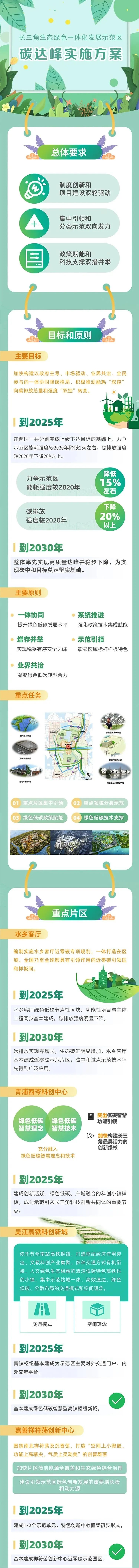 《方案》旨在為探索一體協(xié)同落實碳達(dá)峰目標(biāo)提供可復(fù)制可推廣的經(jīng)驗,為落實長三角一體化和雙碳國家戰(zhàn)略提供有力支撐?!斗桨浮访鞔_了總體要求,以“一體協(xié)同,系統(tǒng)推進(jìn),增存并舉,示范引領(lǐng),業(yè)界共治”為主要原則,提出到2025年,在兩區(qū)一縣(上海青浦、江蘇吳江、浙江嘉善)分別完成上級下達(dá)目標(biāo)的基礎(chǔ)上,力爭示范區(qū)...