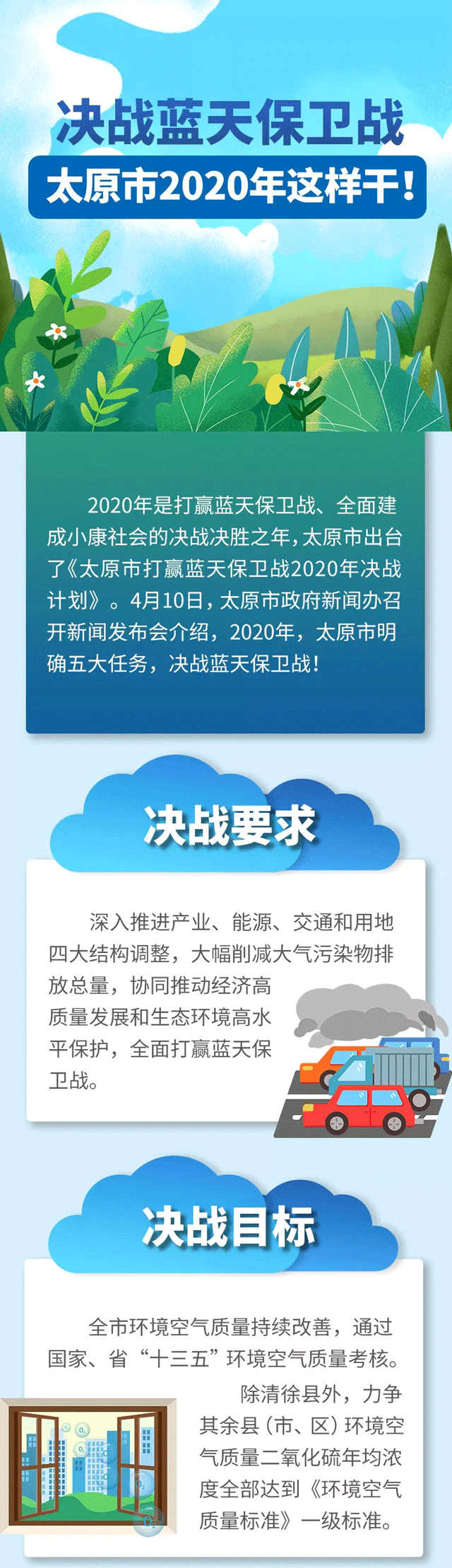 2020年是打贏藍(lán)天保衛(wèi)戰(zhàn)、全面建成小康社會的決戰(zhàn)決勝之年,太原市出臺了《太原市打贏藍(lán)天保衛(wèi)戰(zhàn)2020年決戰(zhàn)計劃》。4月10日,太原市政府新聞辦召開新聞發(fā)布會介紹,2020年,太原市明確五大任務(wù),決戰(zhàn)藍(lán)天保衛(wèi)戰(zhàn)!