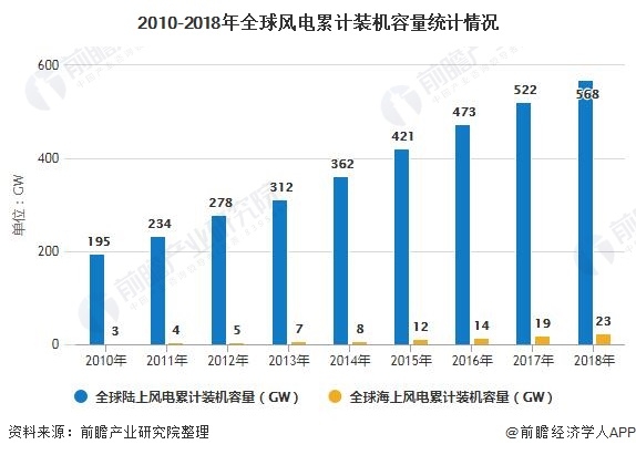 全球風(fēng)電裝機(jī)容量統(tǒng)計分析 截至2018年末,全球風(fēng)電裝機(jī)總?cè)萘窟_(dá)到591GW,較2017年(540GW)上漲9.4%,中英分別是陸上海上風(fēng)電裝機(jī)最大市場。新增風(fēng)電裝機(jī)容量呈下降態(tài)勢,2018年增量主要來自亞太地區(qū)。預(yù)計2019-2024年,海上風(fēng)電每年將增加7-11GW,2025-2030年每年新增...