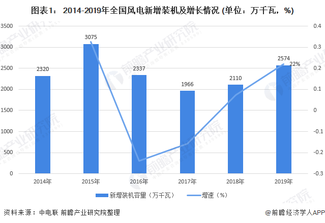 風(fēng)電裝機突破兩億千瓦,陸上風(fēng)電占主導(dǎo),海上風(fēng)電增幅大 2014-2019年我國風(fēng)電累計裝機持續(xù)增長,截至2019年底,全國風(fēng)電累計裝機2.1億千瓦、同比增長14.0%,在新增裝機方面,風(fēng)電年度新增裝機2574萬千瓦,同比上漲22%。 從風(fēng)電結(jié)構(gòu)看,截至2019年底,全國風(fēng)電累計裝機2.1億千瓦中,陸...