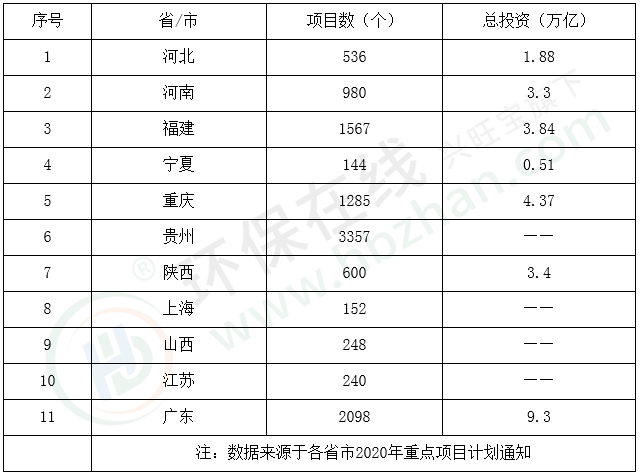 近日,不斷有省市公開2020年重點項目計劃。環(huán)保在線梳理了11個省市的項目名單,包括重點建設(shè)項目、重點續(xù)建項目、重點前期項目、重點預(yù)備項目、重點招商項目、重點保投產(chǎn)項目等。 由于項目過多,則分為上下兩篇介紹。 看看哪些跟環(huán)保有關(guān)。 河北—— 河南—— ...
