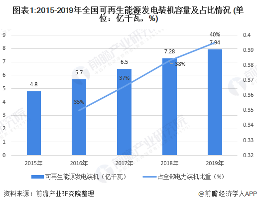 可再生能源發(fā)電累計裝機近八億千瓦,占比四成 2015-2019年全國可再生能源發(fā)電裝機規(guī)模不斷擴大,2019年我國可再生能源發(fā)電累計裝機達到7.94億千瓦,接近八億千瓦,約占全部電力裝機的40%,同比上升約2個百分點。 風(fēng)電、水電占主導(dǎo),生物質(zhì)發(fā)電增速快 從全國可再生能源結(jié)構(gòu)來看,風(fēng)電與水電仍然占據(jù)...