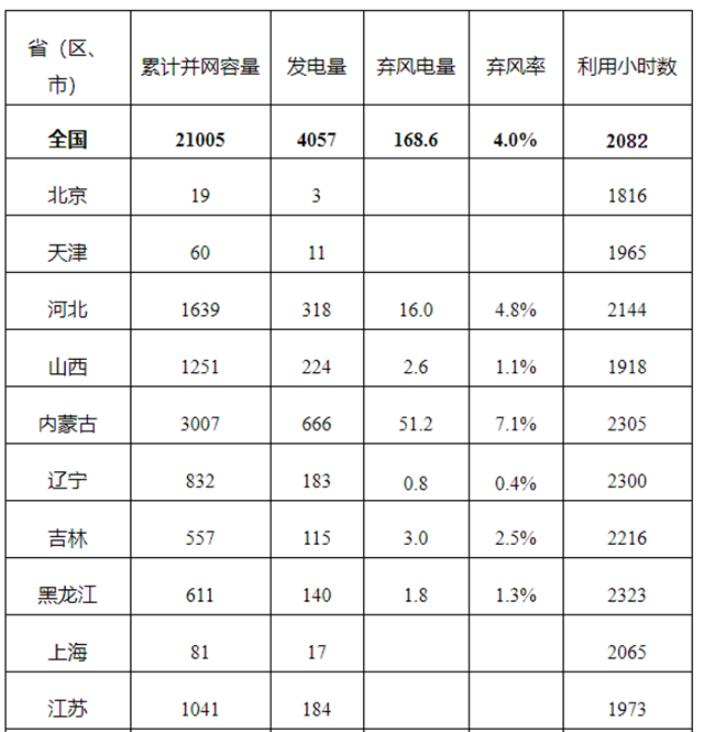 據(jù)行業(yè)統(tǒng)計(jì),2019年,全國風(fēng)電新增并網(wǎng)裝機(jī)2574萬千瓦,其中陸上風(fēng)電新增裝機(jī)2376萬千瓦、海上風(fēng)電新增裝機(jī)198萬千瓦,到2019年底,全國風(fēng)電累計(jì)裝機(jī)2.1億千瓦,其中陸上風(fēng)電累計(jì)裝機(jī)2.04億千瓦、海上風(fēng)電累計(jì)裝機(jī)593萬千瓦,風(fēng)電裝機(jī)占全部發(fā)電裝機(jī)的10.4%。2019年風(fēng)電發(fā)電量405...