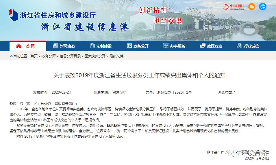 各市、縣(市、區(qū))分類(lèi)辦,省級(jí)有關(guān)部門(mén):2019年,全省各地各單位認(rèn)真貫徹落實(shí)省委、省政府決策部署,持續(xù)深化生活垃圾分類(lèi)工作,取得了明顯成效,并涌現(xiàn)了一批勇于擔(dān)當(dāng)、拼搏奉獻(xiàn)、吃苦耐勞的集體和個(gè)人。為樹(shù)立典型、鼓舞干勁,推動(dòng)我省生活垃圾分類(lèi)工作再上新臺(tái)階,經(jīng)省評(píng)比達(dá)標(biāo)表彰工作協(xié)調(diào)小組批準(zhǔn),決定對(duì)杭州市...