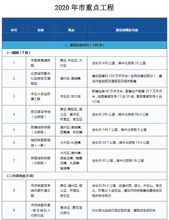 近日,北京市發(fā)展改革委等部門對外發(fā)布《北京市2020年重點(diǎn)工程計劃》。這份厚重的重點(diǎn)工程計劃包括300個項目,覆蓋三大領(lǐng)域,計劃完成投資約2523億元。其中,100項基礎(chǔ)設(shè)施項目計劃完成投資662億元,包含7個國鐵項目、5個市郊鐵路項目、16個地鐵項目、12個公路項目、16個城市道路項目。其中涉及廢...