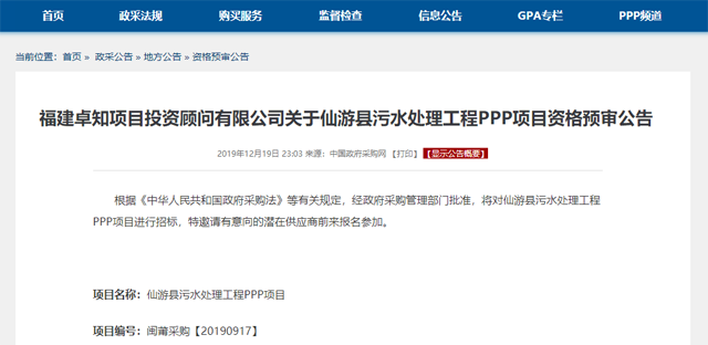圖片源于中國政府采購網(wǎng) 當前,投資動輒億元的水環(huán)境治理PPP項目屢見不鮮。福建省仙游縣污水處理工程PPP項目亦是如此。 分為新建(建設(shè)、運營、移交,即BOT)與存量(委托、運營,即OM),該項目總投資(新建部分)為106076.37萬元(不含建設(shè)期利息,含征地費)。其中直接工程費用為89251.90...