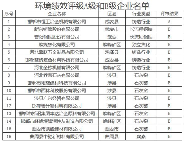 日前,邯鄲公布重污染天氣應急減排清單部省重點行業(yè)A級和B級企業(yè)名單,共16家企業(yè),其中A級一家,B級15家。 重污染天氣應急減排清單部省重點行業(yè)A級和B級企業(yè)名單 根據(jù)生態(tài)環(huán)境部《關于加強重污染天氣應對夯實應急減排措施的指導意見》(環(huán)大氣函〔2019〕648號)和省生態(tài)環(huán)境廳有關要求,對納入《邯鄲市...