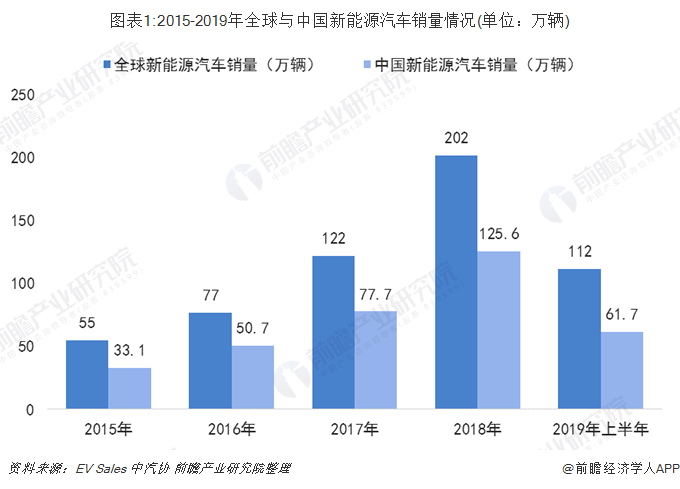 中國新能源汽車銷量逆勢增長 全球占比約55% 在汽車銷量下行的大環(huán)境下,中國新能源汽車銷量逆勢增長,2015-2018年中國新能源汽車銷量持續(xù)增長,2018年中國新能源汽車銷量為125.6萬臺,較2017年增長61.7%,2019年上半年全球新能源汽車銷量達112萬臺,其中中國新能源汽車銷量達61....