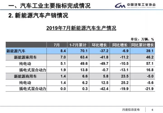 8月12日,中汽協(xié)發(fā)布2019年7月汽車行業(yè)產(chǎn)銷數(shù)據(jù),其中,新能源汽車產(chǎn)銷分別完成8.4萬輛和8萬輛,比上年同期分別下降6.9%和4.7%。 按類型來看,7月份純電動(dòng)汽車生產(chǎn)完成6.5萬輛,比上年同期下降4.8%,銷售完成6.1萬輛,比上年同期增長1.6%;插電式混合動(dòng)力汽車產(chǎn)銷分別完成2萬輛和1....