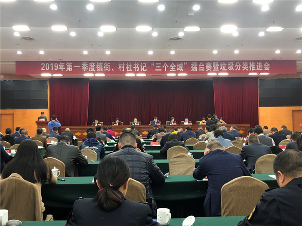 “垃圾分類中,充分發(fā)揮物業(yè)、業(yè)委會、志愿者、黨員代表等骨干力量”“垃圾分類從源頭分好”……3月13日下午,2019年余杭第一季度鎮(zhèn)街、村社書記“三個全域”擂臺賽暨垃圾分類推進(jìn)會在杭州余杭區(qū)政府舉行。3000多名余杭區(qū)、鎮(zhèn)、村三級的干部,以及企業(yè)、學(xué)校、醫(yī)院、商業(yè)綜合體等負(fù)責(zé)人在現(xiàn)場或通過視頻連線參會...