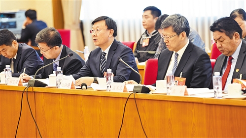 上圖 3月12日,人大內(nèi)蒙古代表團(tuán)舉行全體會議。全國人大代表、內(nèi)蒙古自治區(qū)包頭市市長趙江濤(中)表示,生態(tài)文明建設(shè)利國利民。 本報記者 李景錄攝左圖 3月10日,全國政協(xié)民建界別在駐地舉行小組會議。會前,全國政協(xié)委員蒙曉靈、董新光、賴明勇(從右至左)就“如何探索生態(tài)優(yōu)先、綠色發(fā)展為導(dǎo)向的新路子”展開...