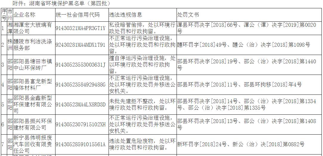 近日,湖南省生態(tài)環(huán)境廳發(fā)布了湖南省環(huán)境保護(hù)黑名單(第四批)的通知,全文如下:各市州生態(tài)環(huán)境局:根據(jù)《中華人民共和國環(huán)境保護(hù)法》《湖南省人民政府關(guān)于建立完善守信聯(lián)合激勵和失信聯(lián)合懲戒制度加快推進(jìn)社會誠信建設(shè)的實(shí)施意見》《湖南省環(huán)境保護(hù)黑名單管理暫行辦法》等相關(guān)規(guī)定,依據(jù)各企業(yè)環(huán)境違法及失信事實(shí),經(jīng)市縣...