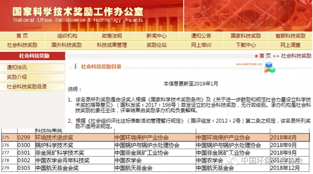 環(huán)境技術(shù)進(jìn)步獎(jiǎng)近日,中國環(huán)境保護(hù)協(xié)會(huì)設(shè)立的“環(huán)境技術(shù)進(jìn)步獎(jiǎng)”被正式納入國家科學(xué)技術(shù)獎(jiǎng)勵(lì)工作辦公室(簡稱:國家科技獎(jiǎng)勵(lì)辦)發(fā)布的《社會(huì)科技獎(jiǎng)勵(lì)目錄》,并在國家科技獎(jiǎng)勵(lì)辦官網(wǎng)公布。至此,“環(huán)境技術(shù)進(jìn)步獎(jiǎng)”成為全國性社會(huì)科技獎(jiǎng)勵(lì)之一,接受國家科技獎(jiǎng)勵(lì)辦的監(jiān)督和指導(dǎo),成為我國生態(tài)環(huán)境領(lǐng)域又一重要的科技獎(jiǎng)項(xiàng)。...