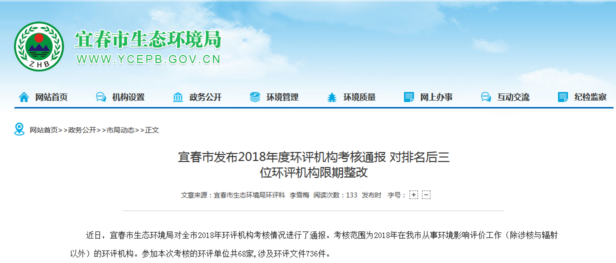 近日,宜春市生態(tài)環(huán)境局對(duì)全市2018年環(huán)評(píng)機(jī)構(gòu)考核情況進(jìn)行了通報(bào)??己朔秶鸀?018年在我市從事環(huán)境影響評(píng)價(jià)工作(除涉核與輻射以外)的環(huán)評(píng)機(jī)構(gòu)。參加本次考核的環(huán)評(píng)單位共68家,涉及環(huán)評(píng)文件736件??己朔秩粘?己撕蛯<壹夹g(shù)復(fù)核兩部分。從日??己饲闆r看,我市環(huán)評(píng)文件的編制基本符合國家有關(guān)法律法規(guī)和環(huán)境...