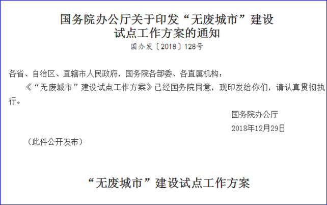 為指導(dǎo)地方開(kāi)展“無(wú)廢城市”建設(shè)試點(diǎn)工作,近日,國(guó)務(wù)院辦公廳發(fā)布了《“無(wú)廢城市”建設(shè)試點(diǎn)工作方案》(簡(jiǎn)稱(chēng)“《方案》”)。 《方案》明確提到,“無(wú)廢城市”是以創(chuàng)新、協(xié)調(diào)、綠色、開(kāi)放、共享的新發(fā)展理念為引領(lǐng),通...