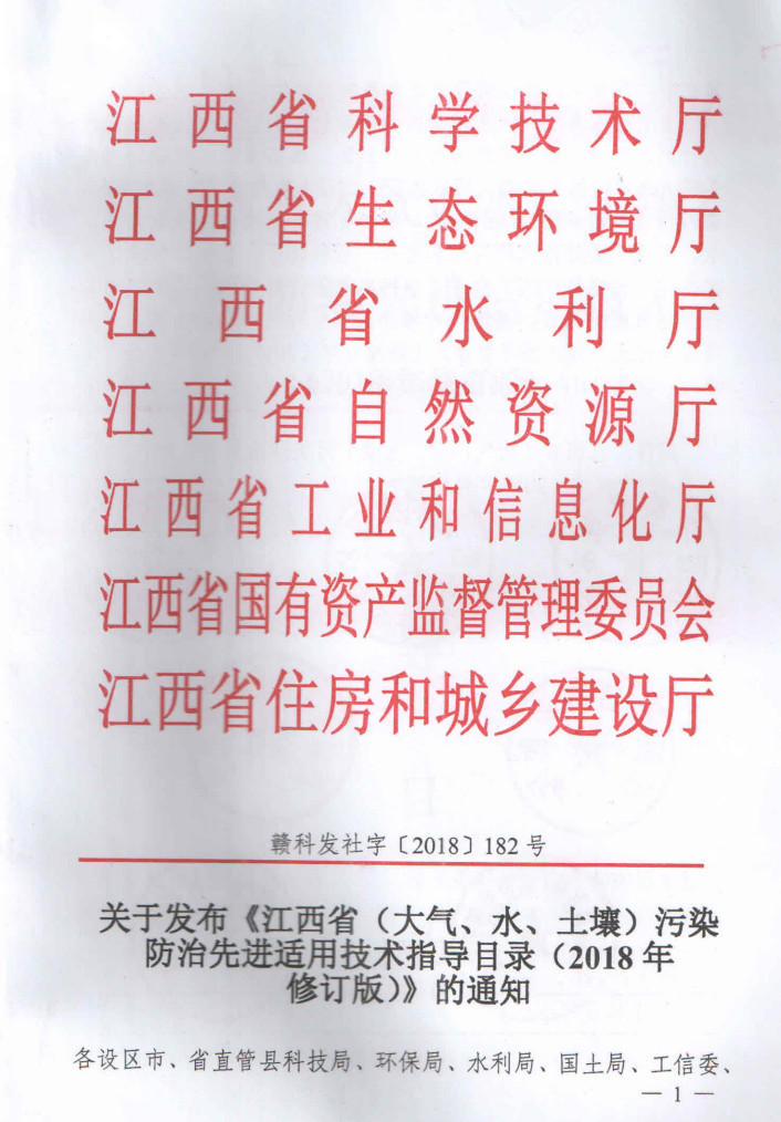 近日,江西省江西省工業(yè)和信息化廳、江西省住房和城鄉(xiāng)建設(shè)廳、江西省科學(xué)技術(shù)廳、江西省水利廳、江西省生態(tài)環(huán)境廳、江西省國(guó)有資產(chǎn)監(jiān)督管理委員會(huì)等多部門(mén)聯(lián)合發(fā)布了江西省(大氣、水、土壤)污染 防治先進(jìn)適用技術(shù)指導(dǎo)目錄(2018年修訂版),全文如下: 關(guān)于發(fā)布《江西省(大氣、水、土壤)污染 防治先進(jìn)適用技術(shù)指...