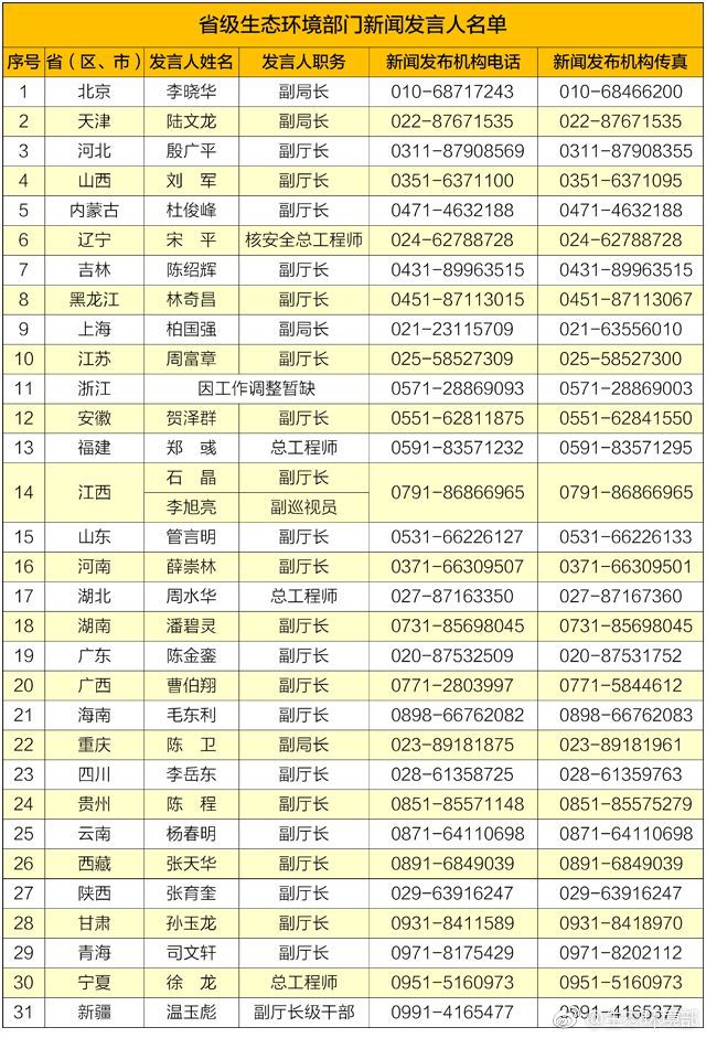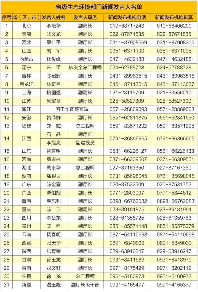 2019年1月21日,生態(tài)環(huán)境部更新發(fā)布31個(gè)省級(jí)生態(tài)環(huán)境部門(mén)新聞發(fā)言人名單,這是生態(tài)環(huán)境部第二次發(fā)布省級(jí)生態(tài)環(huán)境部門(mén)新聞發(fā)言人名單。生態(tài)環(huán)境部有關(guān)負(fù)責(zé)人表示,推進(jìn)例行新聞發(fā)布工作,保障公眾知情權(quán)是生態(tài)環(huán)境部堅(jiān)定不移、常抓不懈的一項(xiàng)重要工作。2017年,生態(tài)環(huán)境部印發(fā)《關(guān)于進(jìn)一步加強(qiáng)環(huán)境信息發(fā)布工作...