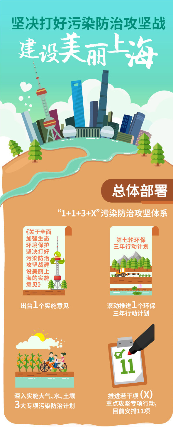 為貫徹落實(shí)習(xí)近平生態(tài)文明思想和全國(guó)生態(tài)環(huán)境保護(hù)大會(huì)精神,堅(jiān)決打好污染防治攻堅(jiān)戰(zhàn),市委、市政府按照“1+1+3+X”體系對(duì)本市污染防治攻堅(jiān)進(jìn)行了全面部署。第一個(gè)“1”是指制定1個(gè)總綱,即印發(fā)《中共上海市委上海市人民政府關(guān)于全面加強(qiáng)生態(tài)環(huán)境保護(hù)堅(jiān)決打好污染防治攻堅(jiān)戰(zhàn)建設(shè)美麗上海的實(shí)施意見》;第二個(gè)“1”...
