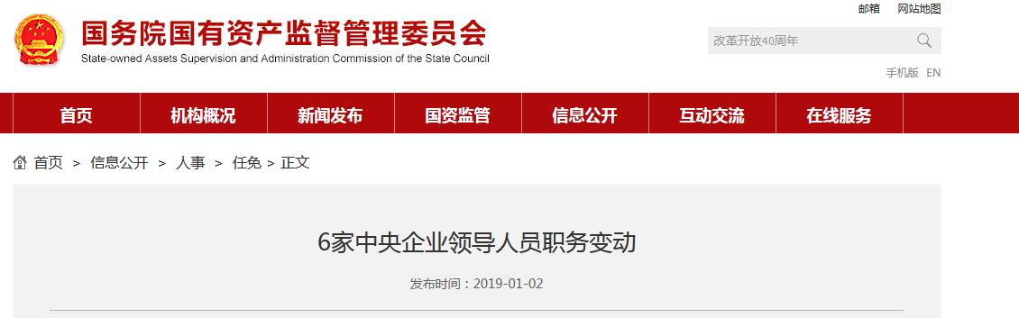 國(guó)務(wù)院國(guó)有資產(chǎn)監(jiān)督管理委員會(huì)網(wǎng)站1月2日?qǐng)?bào)道,國(guó)務(wù)院國(guó)有資產(chǎn)監(jiān)督管理委員會(huì)公布六家中央企業(yè)領(lǐng)導(dǎo)人員職務(wù)變動(dòng)的消息。陳曙光同志任中國(guó)節(jié)能環(huán)保集團(tuán)有限公司黨委副書(shū)記。提名朱慶鋒、劉大軍為中國(guó)節(jié)能環(huán)保集團(tuán)有限公司副總經(jīng)理人選;聘任李文中為中國(guó)節(jié)能環(huán)保集團(tuán)有限公司外部董事。國(guó)資黨任字〔2018〕59號(hào)經(jīng)研究...