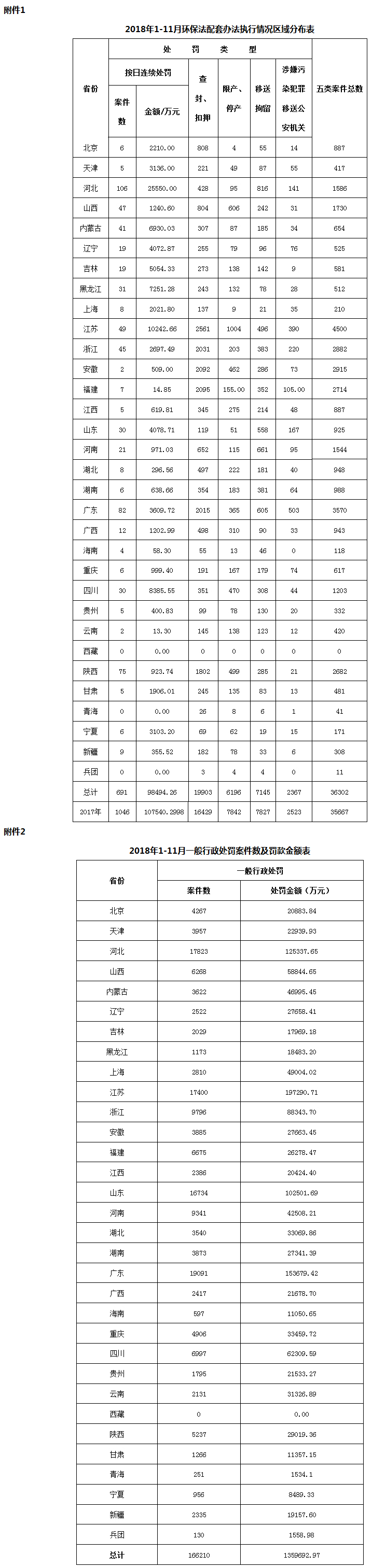 12月25日,生態(tài)環(huán)境部向媒體通報(bào)各地2018年1-11月環(huán)境行政處罰案件與《環(huán)境保護(hù)法》配套辦法的執(zhí)行情況。 2018年1-11月,全國(guó)環(huán)境行政處罰案件共下達(dá)處罰決定書166210份,罰沒款金額為135.97億元。行政處罰力度較大的省份為:江蘇、廣東、河北、山東、浙江。其中,江蘇(19.73億元)...
