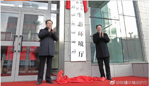 11月29日,上午10時許,在原自治區(qū)環(huán)保廳辦公樓前,自治區(qū)生態(tài)環(huán)境廳揭牌儀式隆重舉行!自治區(qū)黨委副書記李鵬新、自治區(qū)副主席趙沖久出席儀式并為自治區(qū)生態(tài)環(huán)境廳揭牌。