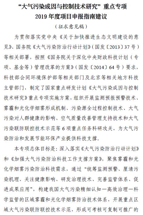 日前,科技部社會發(fā)展科技司發(fā)布了《關于國家重點研發(fā)計劃“大氣污染成因與控制技術研究”等6個重點專項2019年度項目申報指南征求意見的通知》,涉及“大氣污染成因與控制技術研究”、“典型脆弱生態(tài)修復與保護研究”、“水資源高效開發(fā)利用”等環(huán)保相關重點專項,詳情如下:關于國家重點研發(fā)計劃“大氣污染成因與控制...
